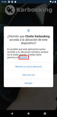 Volver a la aplicación Cambios en el permiso de ubicación con la actualización de Android 11 Si su dispositivo ejecuta Android 11 o superior, la autorización del permiso de seguimiento de la ubicación “Todo el tiempo”, que es requerido para utilizar la aplicación, no esta visible en la selección de inicial.Para habilitarlo toque la opción “Ajustes” resaltada a continuación.Luego, será llevado a la configuración específica de la ubicación para la aplicación. Seleccione la opción Permitir siempre para que la aplicación continúe funcionando como se esperaba.Existe una nueva configuración adicional con Android 11 para evitar la pérdida de servicios en el futuro. Desde esta página, toque la opción Ver todos los permisos para acceder a estas configuraciones.Será llevado a la siguiente pantalla. En la parte inferior de la página, asegúrese de que la opción Revocar permisos si la aplicación no se utiliza esté deshabilitado como se muestra. Esto permitirá que la aplicación continúe rastreando viajes, incluso si no la abre con regularidad. Volver a la aplicación