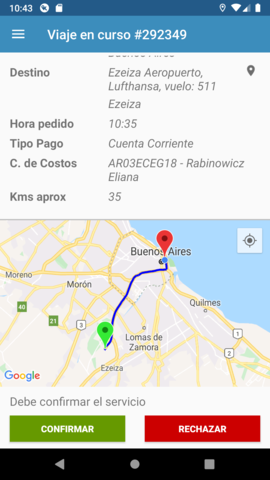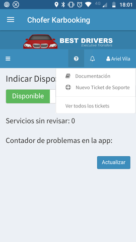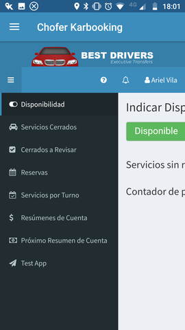 El sistema lo pondrá como disponible al enviar el primer viaje en curso del día. Usted deberá indicar No Disponible al terminar el turno