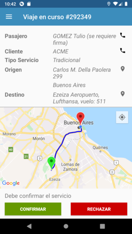 9a) Unos minutos antes de la hora de pedido de un servicio llega la notificación de Viaje en curso