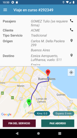 10a) Cuando usted ha llegado al punto de origen a la hora indicada y se ha anunciado, debe presionar Inicio del Servicio. En caso de hacerlo en otro horario o lejos del putno de origen, deberá justificarlo. El servicio permanecerá en modo Espera hasta que llegue el pasajero y presione el botón Pax Abordo