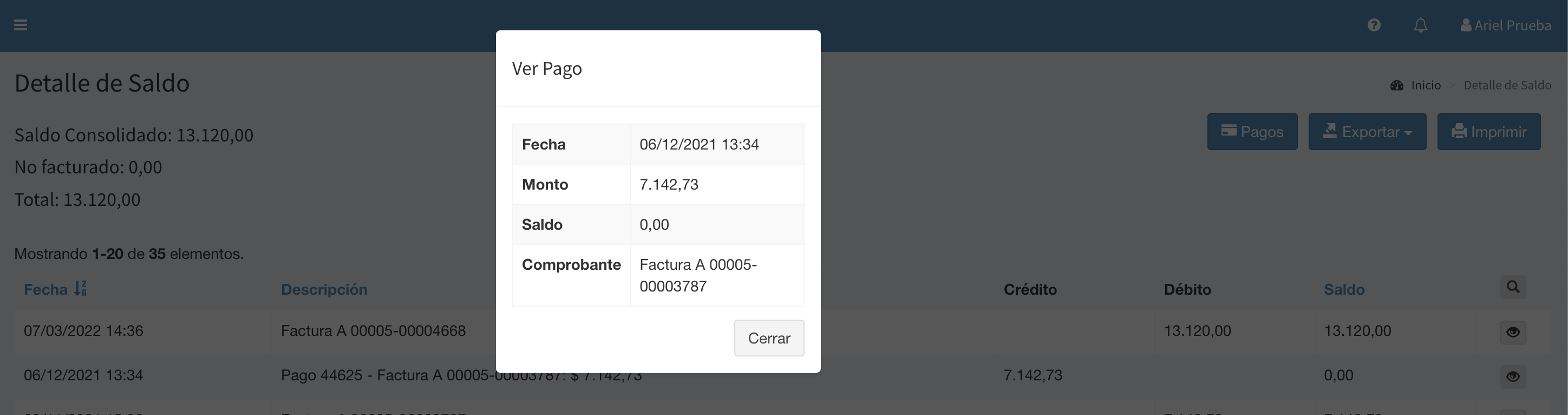 Pago Manual Al presionar sobre un pago ingresado manualmente por Remises Transtrip en el detalle de saldo se puede ver el detalle del mismo: